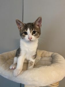 Please note Alder is only available for adoption with one of his siblings (Ash, Magnolia or Holly) or to a family with another kitten or young feline who would make an appropriate companion/playmate.