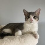 Like his brother, Ash, you’ll often find Alder on the go. He loves to run around and wrestle with his siblings. He uses his cat trees like a parkour course and will need an active adopter ready to invest in plenty of playtime!