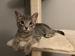 Please note Ash is only available for adoption with one of his siblings (Alder, Magnolia or Holly) or to a family with another kitten or young feline who would make an appropriate companion/playmate.