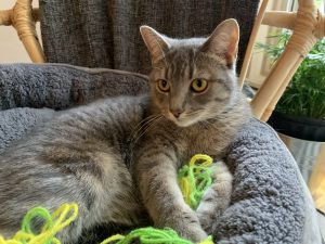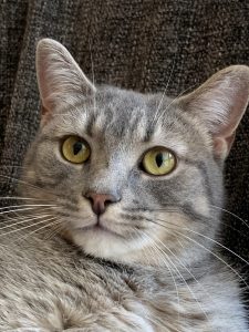 Bella is a lovely lady who will sit quietly on her chair (yes, it’s hers) or nap next to a laptop when her foster humans work from home. She will stare at her look-alike mini hamster, possibly wondering why they can’t play together. She can get a full workout from chasing a piece of yarn, her favorite toy. She needs to stay on a dental diet to protect her teeth and gums.