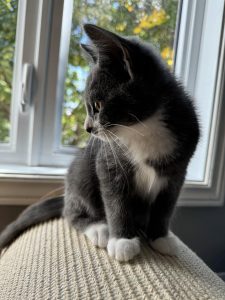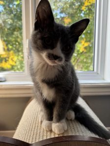 Please note Ebbs is only available for adoption with one of his feline foster siblings (Elliott, Elgin, Elora of Furgus) or to a family with another kitten or young feline who would make an appropriate companion/playmate.