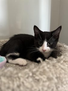 Elliott is always up for an adventure! This playful kitten is a master of fun, turning every day into a new game. From pouncing on feather toys to chasing rolling balls, Elliott’s energy and curiosity are truly infectious. If you’re looking for a spirited and charming companion who fills your days with boundless energy and a symphony of purrs, Elliott is the kitten for you!
