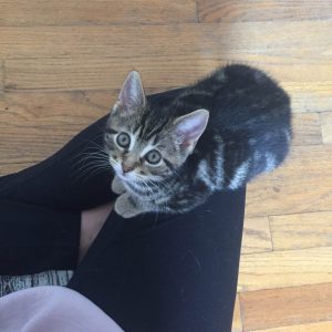 She’s got the beadiest eyes you’ll ever see and puts Puss in Boots to shame. She loves to jump and climb, and if you allow her, she will scale your sweater and claim her spot on your shoulder!