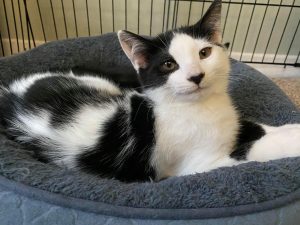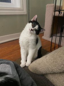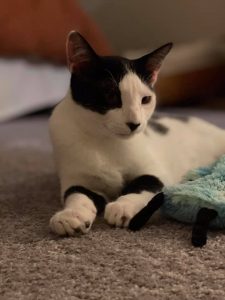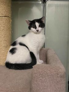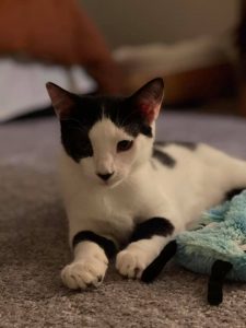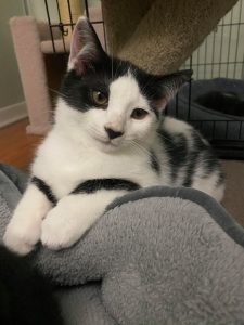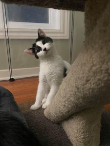 The two of them are very bonded and it is very sweet to watch them play, snuggle, and groom each other. Amber is tiny in comparison… but she sure pulls her weight in a good wrestle match! They are both still very curious kittens, and require a moderate amount of supervision to make sure they don’t get into anything they shouldn’t. Their adopter should certainly be extra cautious of any toxic plants in their household.