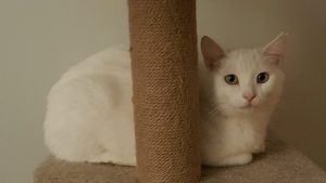 Noelle is a beautiful young girl with a pink nose and gorgeous green eyes. She came into care as a stray and did really well learning how to live indoors with people. After her kittens were adopted, Noelle slowly figured out how to trust people and quickly learned how much she loves her toys.