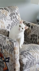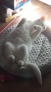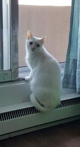 Noelle has medium to high energy and responds well to games, playtime, and receiving attention by you talking to her so she feels noticed. She is NOT a lap cap but will sit quietly next to you on the couch for some evening tv.