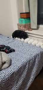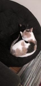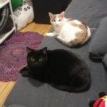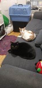 Clementine (3 years, DSH, Calico) is a playful and energetic cat. She loves to be around people and receive pets. She also loves to play with toys, especially anything that involves acrobatics. Olive (4 years, DSH, Black) is a bit more reserved and may take some time to open up to new people. She prefers to lounge near you and enjoys long naps. Olive and Clementine are a bonded pair looking for a quiet, adult-only, dog-free home together.