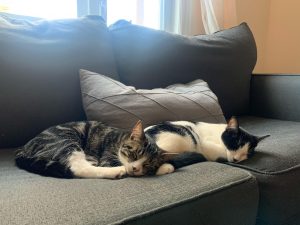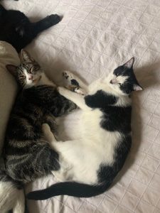 Both girls are really good with other cats, children and adults. They’re also both very food motivated.
