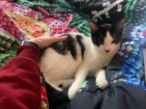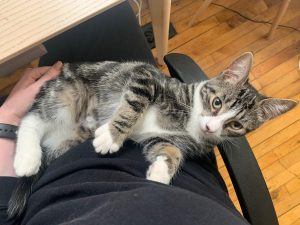 Juneau is a friendly, playful ball of energy. If she isn’t playing fetch with you, she’s curled up in your lap sleeping, and instead of meowing, she squeaks!