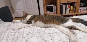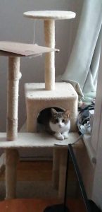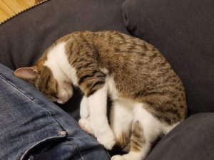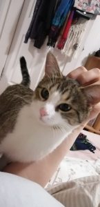 Toffee is a vocal and affectionate cat, who loves to be around people and receive pets! She loves to cuddle and lay nearby while napping and will seize any chance to play with you. She loves to chase her toys! She can be shy with new people and skittish around loud noises and quick movements but comes around with a bit of time.